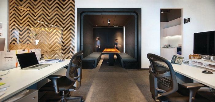 開放式工作區(qū)和建設(shè)的核心–本身的包裹封閉的會議空間是一個循環(huán)的–走廊4m幅寬和對比地板的顏色給它運(yùn)行軌道的感覺之間的象征。