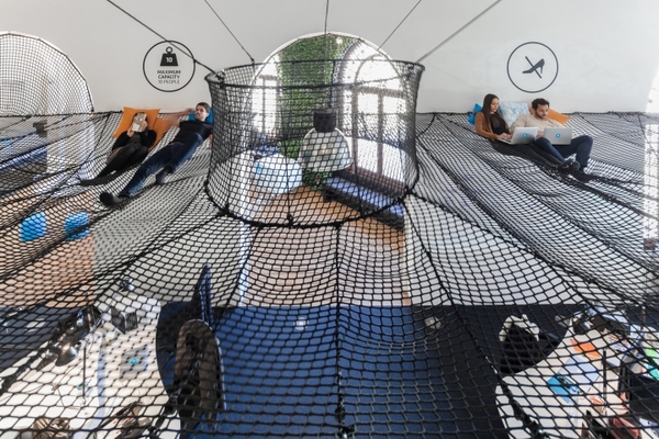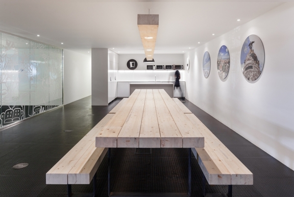 其辦公室裝修通過(guò)創(chuàng)造一個(gè)開(kāi)放的工作空間,加強(qiáng)了公司各部門之間的交流。通過(guò)在開(kāi)放空間之中的沉思場(chǎng)所的設(shè)計(jì)也達(dá)到了個(gè)人和集體的平衡。因此,小空間通過(guò)固定的元素,如圖書(shū)館和半開(kāi)放會(huì)議室,或可移動(dòng)的家具,如一些用于 Skype 聊天的構(gòu)筑物,得到了巧妙的利用。