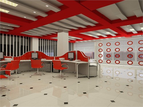 1、時尚服裝公司辦公室門廳裝修設(shè)計:采用大紅色為主色調(diào)凸顯了服裝設(shè)計公司的一種很奔放的一種美感。前臺和休息區(qū)是一個整體的空間,利用展示架把它們成功的分成了兩個區(qū)域,互相獨立又協(xié)調(diào)統(tǒng)一。紅色的亞克力燈也是很搶眼具有一種很時尚現(xiàn)代的美感并且與會議室互相呼應(yīng)使整個設(shè)計做的比較整體。會議室的窗洞是采用像服裝樣式的異性口開洞凸顯了整個設(shè)計主題。辦公空間整個設(shè)計用簡約的線條以及時尚的家具打造一種很熱烈奔放富有激情的公司氛圍。