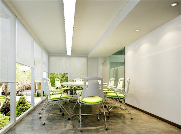 1、職工辦公室設(shè)計(jì):整齊地?cái)[放著的辦公桌椅。每個(gè)座椅后都配備了文件柜,方便工作人員將資料整理、歸類、查找,也在一定程度上避免了辦公桌上的雜亂。這種整潔而井然有序的氛圍能夠使人鎮(zhèn)靜而愉悅。此外,左側(cè)的墻壁上掛著的裝飾畫,文件柜上擺放的陶器和錯(cuò)落有致的窗簾都為這間辦公室增添了不少藝術(shù)氣息,而員工的座椅則選用了明亮的嫩綠,與窗外的樹(shù)木相映襯,清新而美麗。與的充滿功能性不同,會(huì)議室設(shè)計(jì)在一定程度上將干凈、清新的風(fēng)格發(fā)揮到了**。整個(gè)會(huì)議室內(nèi)除了必備的桌椅沒(méi)有其他東西,一是因?yàn)榭臻g本身容量有限,只有用淺色調(diào)進(jìn)行辦公室才能讓人產(chǎn)生視覺(jué)上的擴(kuò)大感;二是因?yàn)檫@間辦公室位于陽(yáng)臺(tái),窗外美景本身就能夠起到非常**的視覺(jué)效果,任何多余的配飾都是畫蛇添足。因此,座椅的嫩綠色成為這間會(huì)議室裝修的點(diǎn)睛之筆,在內(nèi)提亮了色調(diào),對(duì)外又與窗外景色相呼應(yīng)。