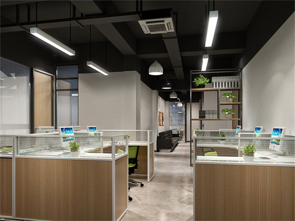 2、該創(chuàng)意園辦公室裝修案例主要以簡(jiǎn)約工業(yè)化風(fēng)格主,設(shè)計(jì)師運(yùn)用光線的原理大面積使用玻璃隔斷,天花噴黑 地面油加固漆,使其整個(gè)辦公室更加通透、大氣且提高員工的舒適感。