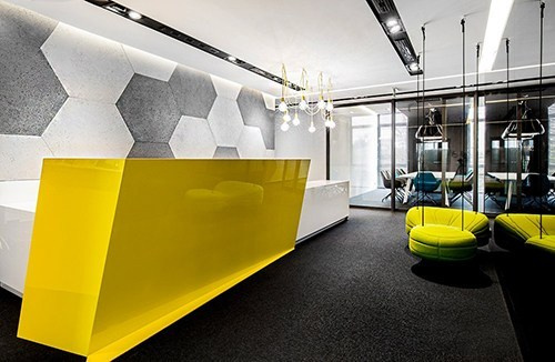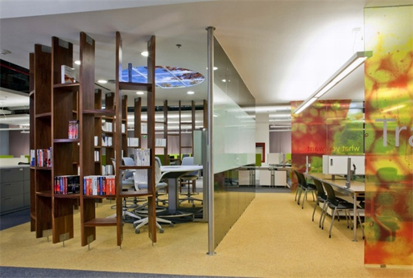 2、某互聯(lián)網(wǎng)公司辦公空間設(shè)計(jì):在辦公室的不同區(qū)域里,有幾面用切割過(guò)的石材、木材、以及軟墊和玻璃裝飾成的墻壁,這顯得特有個(gè)性。總之,這是一個(gè)對(duì)到訪者來(lái)說(shuō)溫暖怡人,對(duì)員工來(lái)說(shuō)能夠振奮身心的地方。這樣一個(gè)辦公場(chǎng)所既要像家一般舒適,又要滿足工作的實(shí)際需要,這的確不太容易。