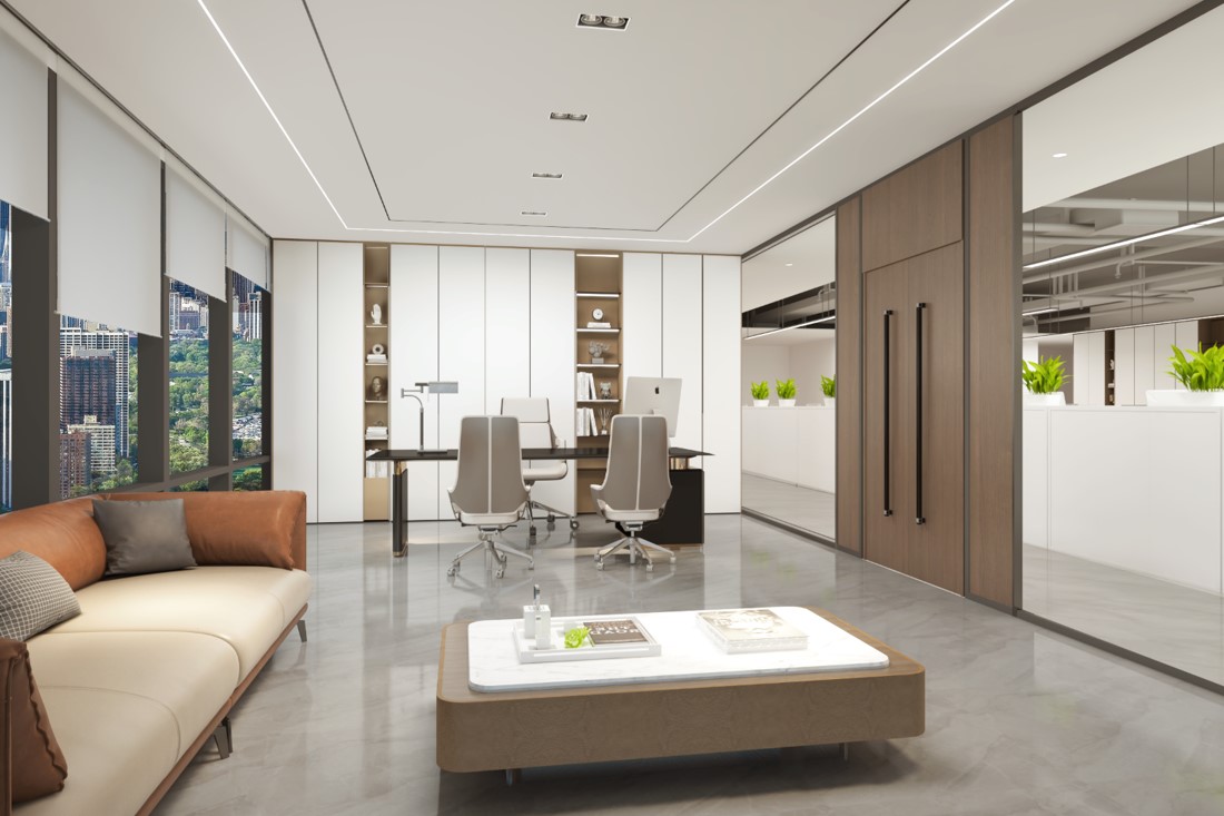 設計介紹:主要展示前臺、洽談區(qū)、走廊、貴賓區(qū)、會議室、辦公區(qū)等各個區(qū)域辦公室裝修效果圖,設計師們根據(jù)不同樓層采用采取不同辦公室裝修風格,現(xiàn)代簡約、莊重凝練兩種風格相互融合,主要以白色為主,更符合的公司形象。