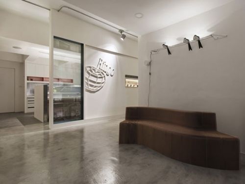 編輯點評:辦公室入口的面積相對較小,設計師很巧妙地采用矩形瓷磚、并且在末端采用深色瓷磚進行裝飾,顯出放射狀,有放大視覺效果的功能。