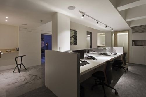 編輯點評:用矮墻隔斷出辦公區(qū)與公共區(qū),整體色調(diào)風格一致,不脫離簡約風的主題。