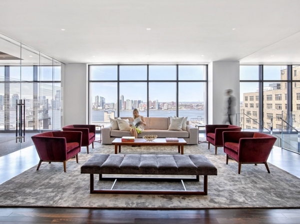 精致皮革裝飾的電梯廳面向開敞明亮的休閑區(qū),高大的落地玻璃窗將遠(yuǎn)處哈得遜河的美景盡收眼底。設(shè)計(jì)取消傳統(tǒng)的接待臺(tái)模式,以簡(jiǎn)約的現(xiàn)代禮遇打造個(gè)性化的服務(wù)體驗(yàn)。
