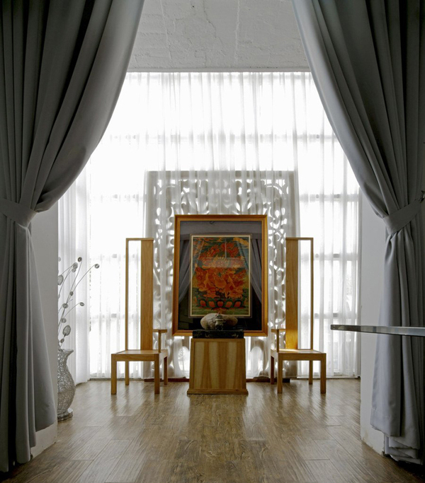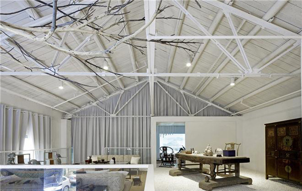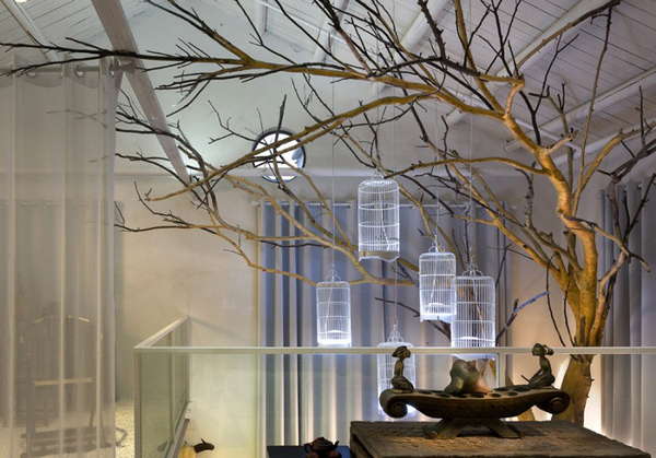 枯樹(shù)、鳥(niǎo)籠、白色鵝卵石、明代老家具等這些原生態(tài)的設(shè)計(jì)元素,在設(shè)計(jì)師筆下挖掘、整合運(yùn)用,塑造了一個(gè)溫文爾雅的環(huán)境,在人性化上一樓兼做了一個(gè)可交流的小餐吧。