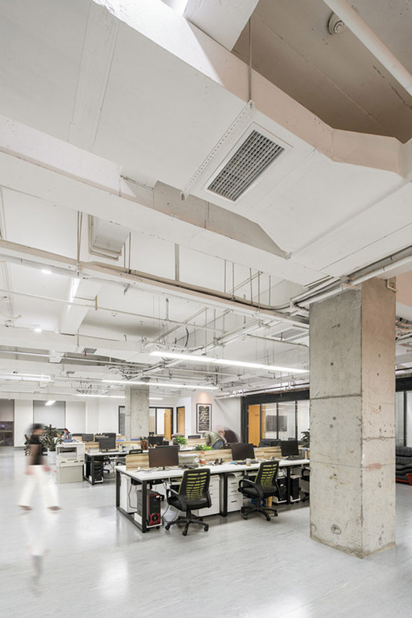 新辦公室的設(shè)計之初,本著拋開一切的華而不實(shí)的裝飾,保留建筑*本真的空間屬性,柱子和天花被**化的保留原始的風(fēng)貌,揭示出裸露的構(gòu)造。