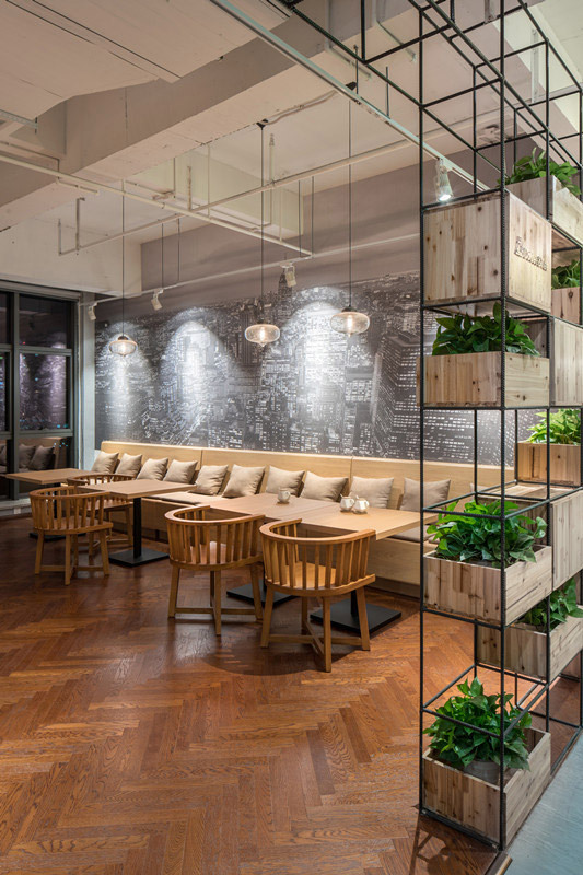 以建筑*基本的材料來重構(gòu)整個空間的精神:鋼筋、混泥土、原木、原頂、鋼板等喚起工業(yè)城市美學(xué),簡單、大膽、實(shí)用,突出設(shè)計的屬性。