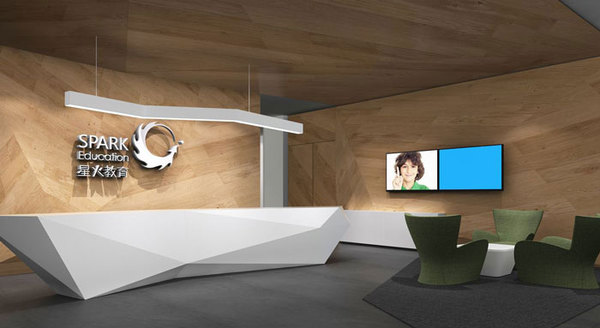 接待區(qū)域的設(shè)計(jì),設(shè)計(jì)師巧妙的利用了定位焦點(diǎn),以此來凸顯企業(yè)的實(shí)力,使的用戶在企業(yè)可以進(jìn)一步得到認(rèn)可。