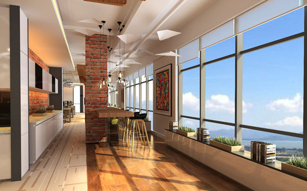 辦公區(qū)域的一測,被設(shè)計師設(shè)計成公共區(qū)域,這樣的好處就是一則可以使空間利用到**化,二則就是可以**限度的為員工的娛樂、休息提供很好的平臺。