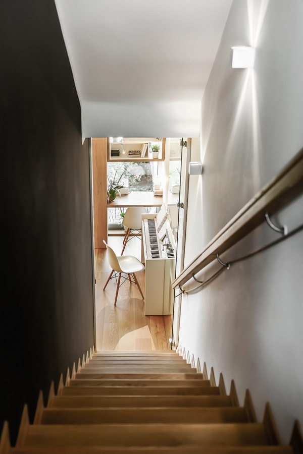 設(shè)計(jì)團(tuán)隊(duì)盡可能充分的利用空間的每一角落,在玻璃落地窗邊,定制出簡易實(shí)用的工作區(qū)域,練琴房也擺放于此,讓陽光、美景、伴隨著每天的工作時光。