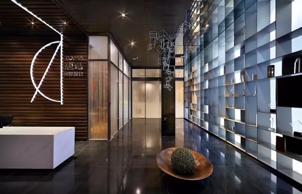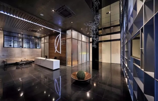 前臺(tái)對(duì)面的墻面處,擺放著一個(gè)傳統(tǒng)中式的柜體,黑色的大漆外表點(diǎn)綴著赤色的朱砂,體現(xiàn)出骨子里的我國精力以今世的審美視覺體現(xiàn)東方的空間氣質(zhì)。