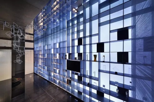 平面與立面的構(gòu)成在這個(gè)區(qū)域被潛移默化的表達(dá)出來,闡述著今世的解構(gòu)主義理念,實(shí)在、虛幻以及兩者的聯(lián)系。格子內(nèi)陳設(shè)著各項(xiàng)世界新的榮譽(yù)。在此基礎(chǔ)上,是非的界面在燈火的效果下煥宣布異樣的視覺感染力。