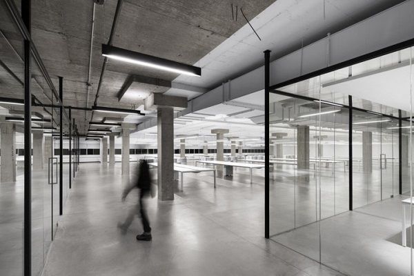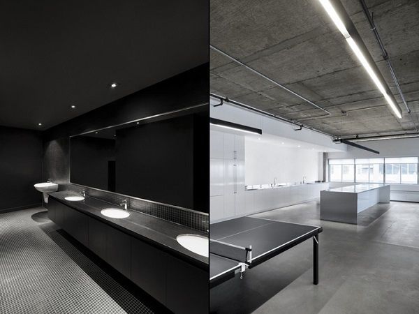上面這個(gè)就是加拿大**奢侈品品牌SSENSE公司的辦公室裝修設(shè)計(jì)。在這里,灰色和光線整合,使得整個(gè)空間不再單調(diào)。無論是辦公室空間內(nèi)大量的玻璃隔斷還是超大的窗戶都能夠使得光線在這里充分發(fā)揮它的功能?;疑@個(gè)由略帶貶義的顏色卻和象征著積極樂觀形象的陽光在這個(gè)辦公空間不期而遇,整個(gè)空間便在這兩種元素的相互作用下變得柔和起來。