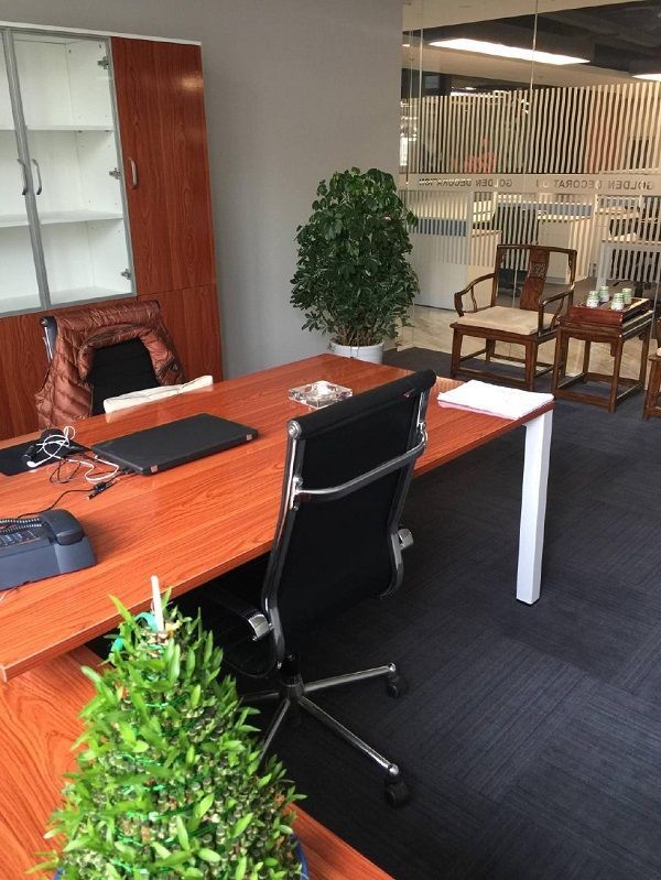 緊接著看到的是貴賓接待區(qū),這一部分的辦公室設(shè)計(jì)分為兩塊。一塊是中式雕花桌椅搭配屏風(fēng)樣式的辦公室隔斷,另一部分則是現(xiàn)代風(fēng)格的皮質(zhì)包邊椅子搭配木質(zhì)簡(jiǎn)單書柜。這兩個(gè)部分的辦公室設(shè)計(jì)各具特色,但又在顏色上互相搭配,使得整個(gè)辦公室設(shè)計(jì)更加和諧。