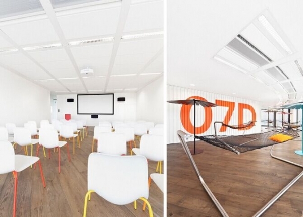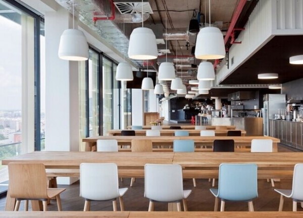 在Prague 辦公區(qū),我們會發(fā)現(xiàn)這里有一個私人的餐廳(其所需要的運(yùn)營成本,員工的花費(fèi)由公司負(fù)責(zé)),共設(shè)計有七層空間,修建了健身房、商店、錄音棚、游戲室、電影院、高爾夫球模擬器、圖書室、布置有吊床和遮陽傘的休息室。對于辦公區(qū)域而言,沒有標(biāo)準(zhǔn)化的建筑元素。