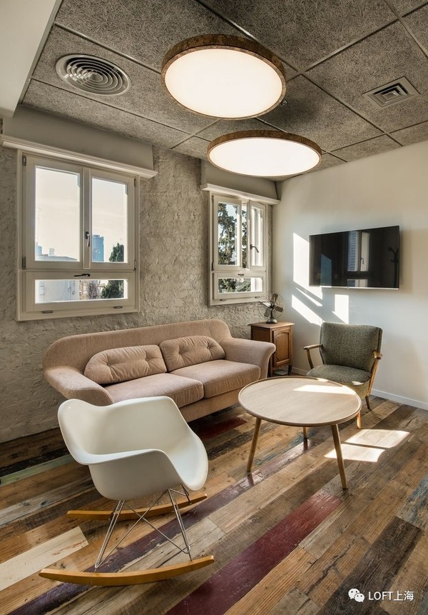 在線交易平臺(tái)服務(wù)公司Fiverr的新辦事處位于***特拉維夫一座歷史悠久的4層建筑物里,其室內(nèi)辦公空間由Setter Architects設(shè)計(jì),為了保護(hù)這棟舊建筑,他們?cè)诖嘶A(chǔ)上新蓋了三層樓。辦公室的設(shè)計(jì)靈感來源于老建筑的歷史感與國(guó)際大都市文化的碰撞,其室內(nèi)設(shè)計(jì)處處透露出新舊事物的對(duì)話:新鋪設(shè)的地板,回收的Beit Ha’ikarim時(shí)期的木制窗框,跳蚤市場(chǎng)淘來的家具與當(dāng)代家具混合布置,暴露的硅酸鹽塊老墻和未處理的建筑材料。