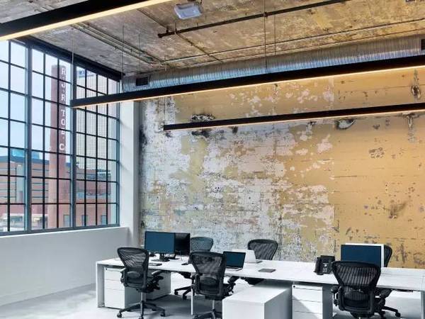 結(jié)構(gòu)柱和梁暴露在外,依然覆蓋著近乎一個世紀(jì)的涂料,*小程度的噴砂以防止剝落。表面和家具的靈感來自原始空間;自由形式盒子被包裹在膠合板和深灰色的板巖,椅子顏色從混凝土墻上采樣。設(shè)計師設(shè)計了一個穿孔金屬網(wǎng)系統(tǒng),以允許整個辦公室的開放性和流動性。
