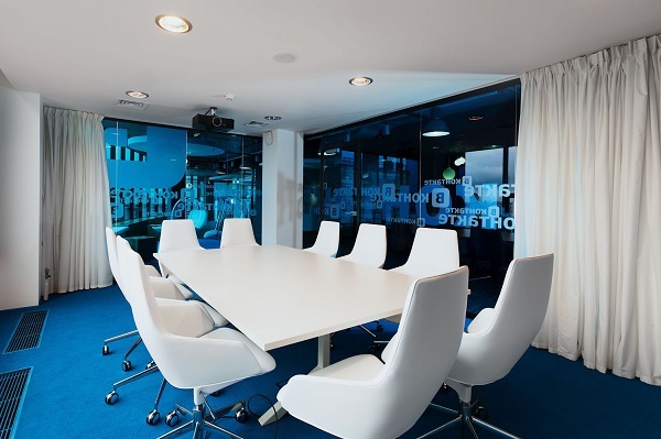 不同用途的辦公室設(shè)計(jì)選用的顏色也不同。例如藍(lán)色是一個(gè)可以使時(shí)間“變快”的顏色,現(xiàn)如今,很多員工都對長時(shí)間的會議覺得煩惱,然而開會又是公司必不可少的程序。因此,領(lǐng)企小編建議,辦公室會議室設(shè)計(jì)**以藍(lán)色為基調(diào)進(jìn)行室內(nèi)裝潢,藍(lán)色的辦公室空間,會讓人覺得時(shí)間過得很快,從而會議結(jié)束的很快的效果。