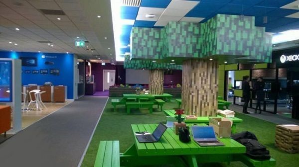 方塊積木一般的樹,塊狀的藍(lán)天白云。這是什么,相信不用小編多說了吧!這個Minecraft(我的世界)風(fēng)格的辦公室設(shè)計是微軟公司在英國的一家公司的辦公室設(shè)計。整個辦公室風(fēng)格都被設(shè)計成Minecraft風(fēng)的,置身于這樣的辦公室空間之中讓小編不僅想掄起斧頭砍下一塊材料收藏起來了呢。