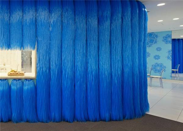鯉魚、龜甲、青海波,種種元素都被毫不猶豫地拿來作為辦公室軟裝修的“工具”。澄凈的背景墻,再加上分隔空間的同時使人仿若置身于居酒屋的暖簾,都給人一種超脫物外的審美感受。置身此間,你會聯(lián)想到什么呢?是海風(fēng)拂面的清涼?親近自然的愉悅?還是一期一會的禪意?