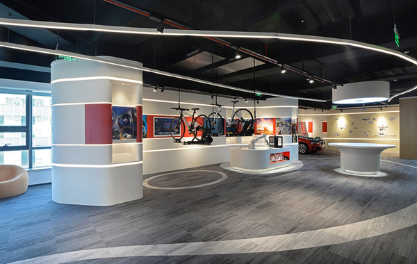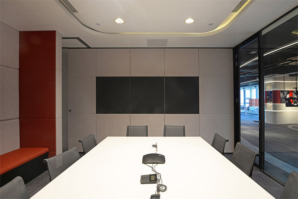 上海領(lǐng)企創(chuàng)裝飾公司分享的這套網(wǎng)絡(luò)科技辦公室裝修設(shè)計(jì)圖中,辦公室前臺(tái)及展廳的設(shè)計(jì)采用了弧形墻體,墻體上的弧形燈帶、天花上的吊燈以及不同顏色地毯拼接而產(chǎn)生曲線元素貫穿整個(gè)展廳空間,帶來極強(qiáng)的視覺延伸感。配合了VR等互動(dòng)體驗(yàn)裝置,以及實(shí)體產(chǎn)品,為訪客帶來富有科技感的體驗(yàn)感受。提高空間的功能性和使用效率,大會(huì)議室可以在需要的時(shí)候由移動(dòng)隔斷分割為兩個(gè)獨(dú)立的會(huì)議室使用。下面領(lǐng)企設(shè)計(jì)創(chuàng)裝飾公司小編帶大家看一下1200科技公司辦公室裝修案例!
