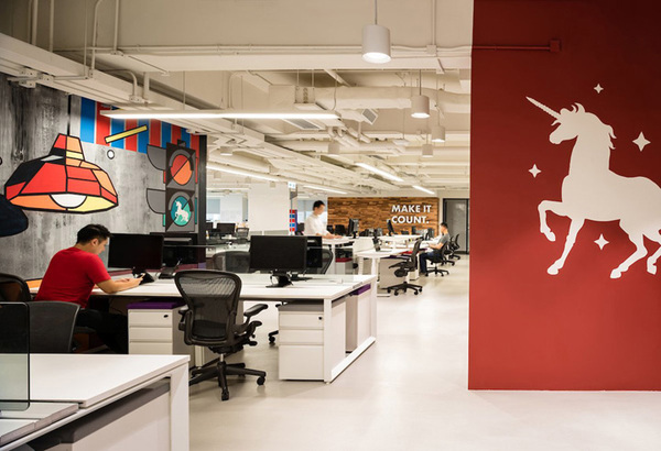 辦公室裝修設(shè)計的檔次很重要,關(guān)乎著員工的使用感受。裝修的檔次是由很多元素決定的,這些元素體現(xiàn)到室內(nèi)環(huán)境當中,就是決定整個辦公室使用效果的決定性因素。比如前期辦公室設(shè)計的設(shè)計師給出的設(shè)計圖紙,裝修所使用的材料及輔助材料,后期施工的執(zhí)行和監(jiān)督隊伍等等。下面這組案例是一個跳躍感很強的辦公室裝修案例,非常適合年輕的團隊,希望能給大家?guī)硇╈`感!