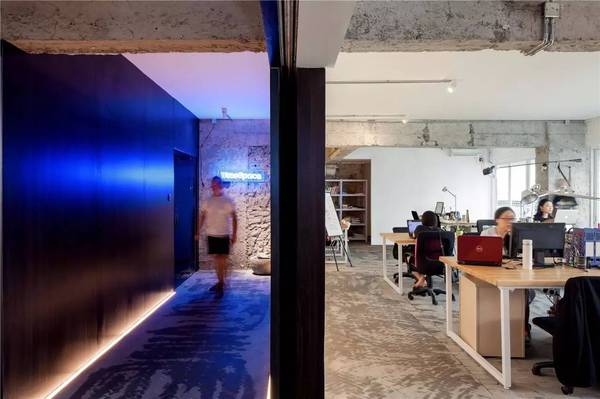 空間本身有著自己的語(yǔ)言與靈魂。綻放設(shè)計(jì)對(duì)原有空間通過(guò)剝離和重構(gòu)的手法,剝掉舊空間90%的原有飾面,大面積保留拆除過(guò)程中形成的隨機(jī)機(jī)理。因地制宜,還原空間本該有的氣質(zhì),來(lái)表達(dá)Blue Space對(duì)自由,開放,返璞歸真狀態(tài)的追求。