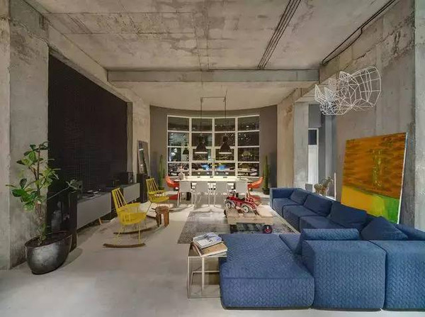 整個空間的墻體和屋頂沒有做處理,保留了原始的味道,大膽的顏色和有創(chuàng)意的家具,是它的亮點,也是設計的重點,高純度的黃色和藍色的碰撞,為空間增加了時尚感。