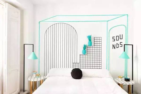 雖然都是白色基調打底的空間,但每一個卻都個性張揚,比如鋪滿天藍色油漆的墻面搭配以大大小小的黑白裝飾畫,圓形、拱形、直線以及黑白條紋拼貼出來的彩色幾何墻面,紅藍主題的餐廳空間輔以大面積花磚鋪地等等。