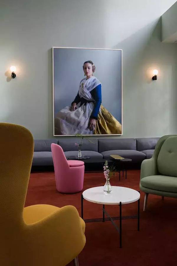 當然,除了性價比,這間休閑旅館的空間設計更是值得一說。負責這里空間設計的,是我們曾詳細報道過的西班牙創(chuàng)意咨詢公司 Masquespacio。這個以色彩設計見長的公司,這一次也把他們對色彩的想象力與把控力用在了瓦倫西亞休閑旅館。