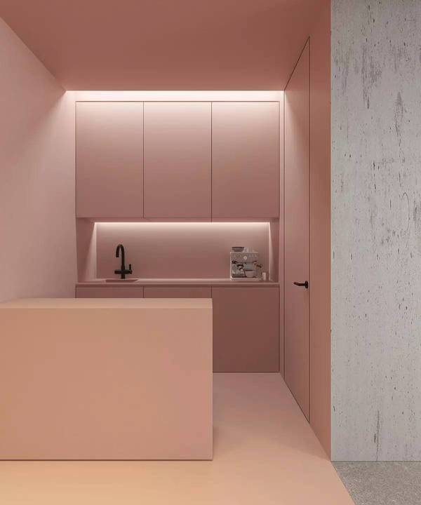 用玻璃隔斷劃分出會(huì)議室,肉粉色的空間搭配質(zhì)感的黑色桌椅,柔美與硬朗相互沖突,形成強(qiáng)烈的視覺感受。