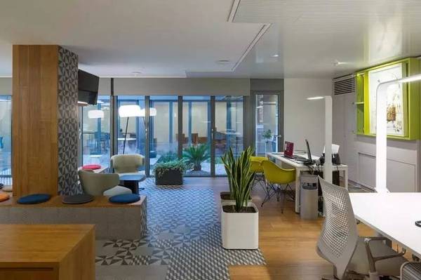 相較于小花園中的綠意,室內(nèi)則使用了更多暖色在輕松寫意的基礎(chǔ)上又增添了一筆柔和溫馨的感覺(jué)。主要的工作空間是開(kāi)放式的,這樣能夠讓各個(gè)部門之間更好的協(xié)作溝通。其中使用的材料以木材為主,木質(zhì)地板和木質(zhì)柱子的顏色搭配著白色、橙色和黃色的辦公桌、座椅和坐墊,再輔以綠色植物的點(diǎn)綴,溫馨的氛圍勝過(guò)了辦公室。這樣的設(shè)計(jì)會(huì)帶給員工們不同以往的工作體驗(yàn),如家般愜意舒適的空間會(huì)讓員工的工作熱忱和效率都得到提高。