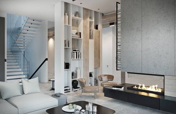 這個(gè)現(xiàn)代化的室內(nèi)是為離莫斯科不遠(yuǎn)的私人住宅而建的。使用簡(jiǎn)單廉價(jià)的材料和一些昂貴的家具,但取得了良好的效果。