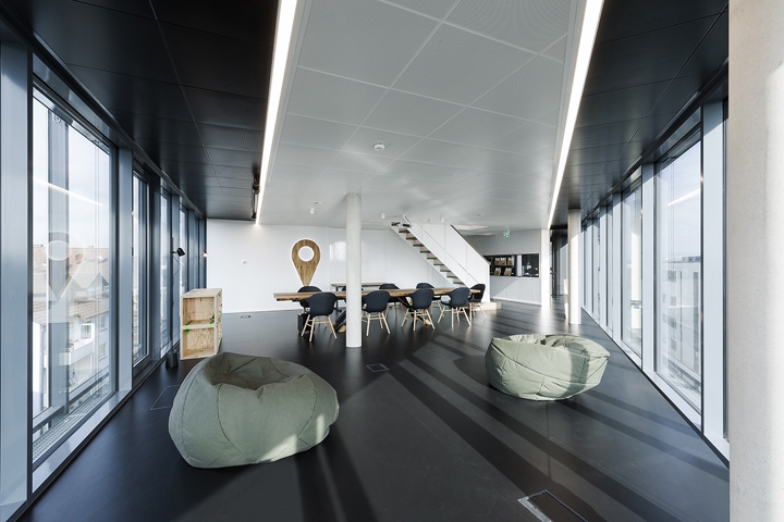 2、國外400平方米簡約時尚辦公室設(shè)計:精心選擇的材料——實木桌子、天然橡膠地板、集裝箱和用綁帶固定在廚房天花板上的松木,這些元素再加上蠟的金屬墻面,形成微妙的對比。有過多次海上經(jīng)歷大型的集裝性成為辦公室的亮點,在辦公室施工階段,集裝箱是用起重機吊進(jìn)室內(nèi),集裝箱內(nèi)部是一間會議室。開放式的整體概念清楚的展示了在這兒工作的雇員,一家年輕、有活力且有宏大目標(biāo)的公司——保護(hù)地球資源,不浪費,用長期發(fā)展的眼光采用綜合的方式。