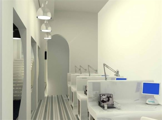 女性雜志社辦公室裝潢:整個空間多采用圓弧來表達(dá)女性的柔美,純凈的色彩,意在給人一種靜謐、優(yōu)雅的知性美。