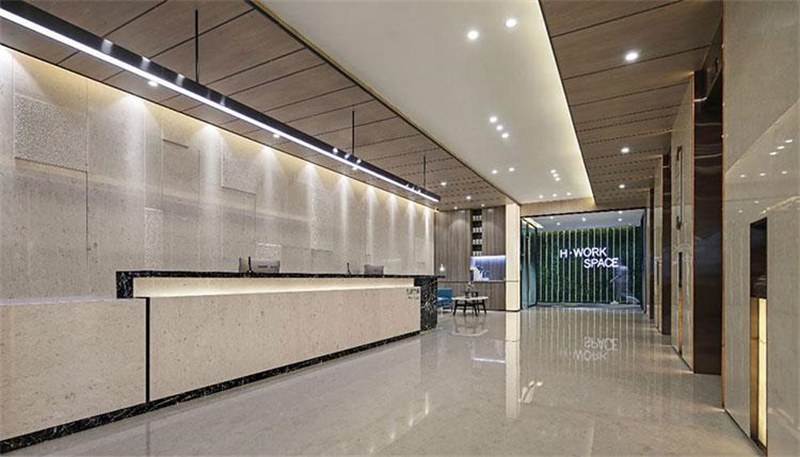 首先前廳作為給客戶的第一印象中的關(guān)鍵一環(huán),設(shè)計一定要大氣。背景墻可使用瓷磚+金屬搭配,前臺選用米白色的大理石+金屬點綴與背景墻相呼應(yīng)。天花部分則可以通過造型燈帶,燈具裝飾,格柵,打造一個通透大氣的前廳。其次,使用*多次數(shù)的會客廳、接待室,可以運(yùn)用以企業(yè)商標(biāo)為基調(diào)的地毯或暖色系的地毯,木色或金色的隔斷,再通過軟裝的搭配,形成舒適、大氣、穩(wěn)重的空間。