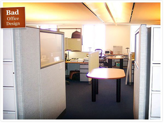 改造前:雜亂的辦公室。如果員工聚在這張桌子旁,將影響周圍的員工。