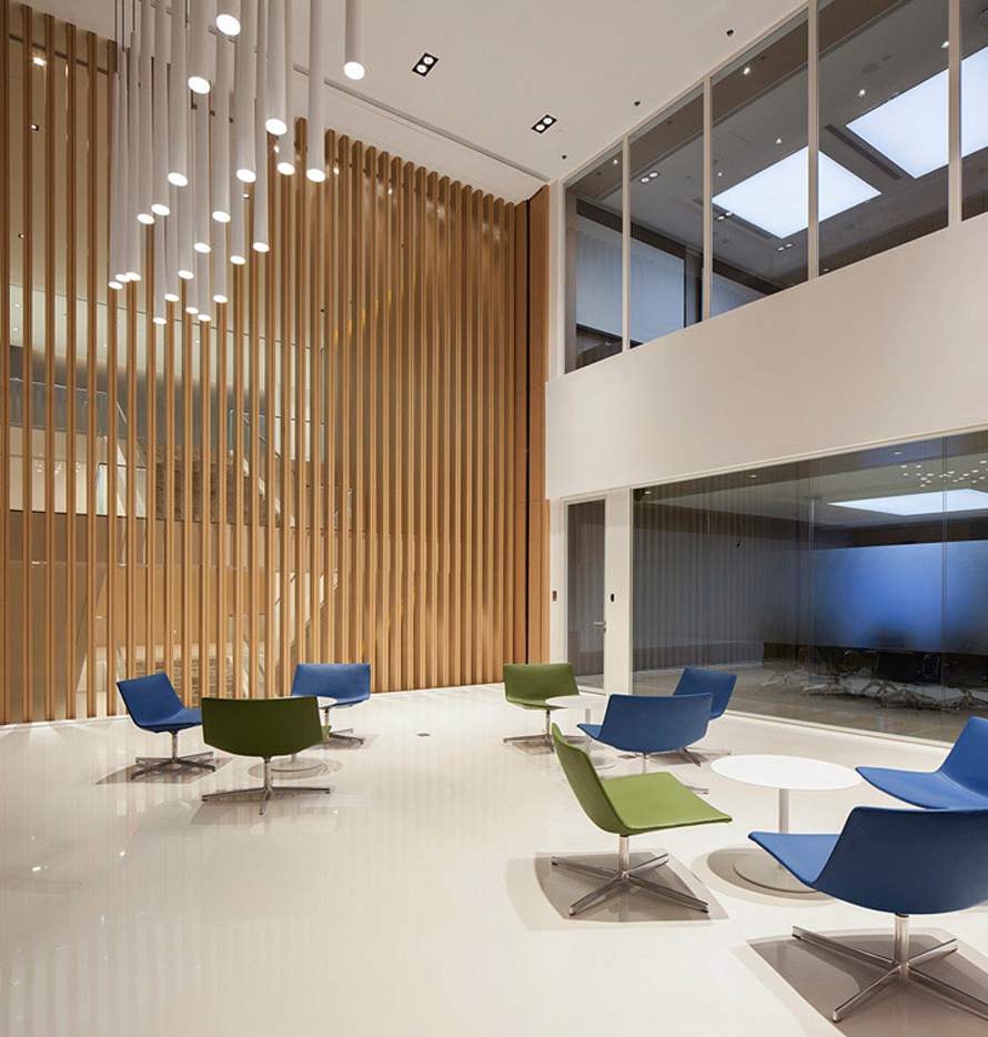 簡約型辦公室裝修,是非常考驗空間的靈活性和實用性的。如何使空間功能而相互滲透?如何讓空間使用率達到**?這都是非常需要注意的。劃分空間的**途徑不一定局限于硬質(zhì)墻體,可以通過家具、陳列品、吊頂、地面材料甚至可以根據(jù)燈光的變換來進行劃分,具有很好的兼容性、流動性及靈活性。